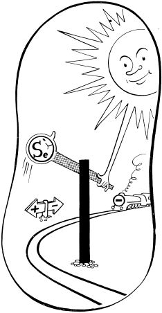 Вот во всех этих устройствах и принимает участие наряду с другими полупроводниками селен. Еще одно из замечательных свойств селена— способность резко изменять свою электропроводность в зависимости от освещения. На свету его электропроводность в тысячу раз выше, чем в темноте!