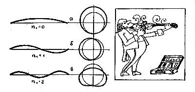 Хорошо известно, что при ударе по натянутой струне она начинает звучать, и звук этот зависит от длины струны. Механизм возникновения звука также хорошо известен: колебания струны передаются воздуху, и мы воспринимаем уже колебания воздуха, а не колебания струны, которые их породили. Однако между ними существует строгая связь. Например, если мы слышим ноту ля из первой октавы, то в этот момент струна колеблется с частотой ?=440 герц, то есть 440 колебаний в секунду. А поскольку скорость звука в воздухе равна v = 334 м/сек, то длина этих звуковых волн равна