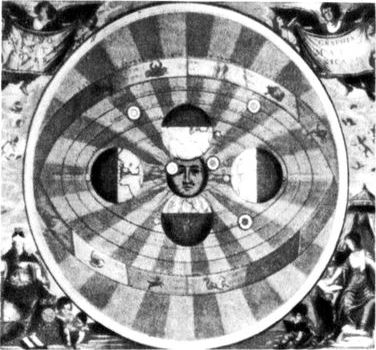 Старинное изображение системы мира по Н. Копернику.