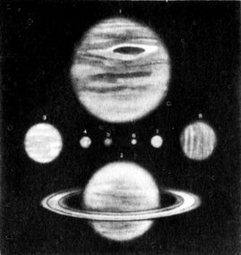 1 — Юпитер, 2 — Сатурн, 3 — Нептун, 4 — Земля, 5 — Марс, 6 — Меркурий, 7 — Венера, 8 — Уран.