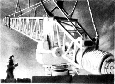 22-метровый радиотелескоп Крымской астрофизической обсерватории АН СССР. С его помощью ученые систематически ведут наблюдения за радиоизлучением Солнца, планет и других источников космических излучений.
