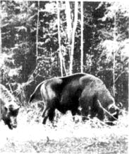 Зубры в Беловежской пуще.