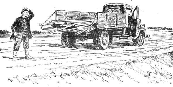 Шофер включил заглохший двигатель и задним ходом выбрался на шоссе. Тут он остановил машину на обочине и стал осматриваться — почему машина перестала слушаться руля? Он проверил рулевое управление — все было в порядке; пошел осматривать груз…