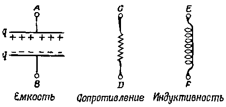 Фиг. 23.4. Три пассивных элемента цепи.