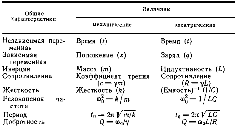 где ?20=1/LC, а ?=R/L. Мы получили тот же знаменатель, что и в механической задаче, со всеми его резонансными свойствами! В табл. 23.1 приведен перечень аналогий между электрическими и механическими величинами.